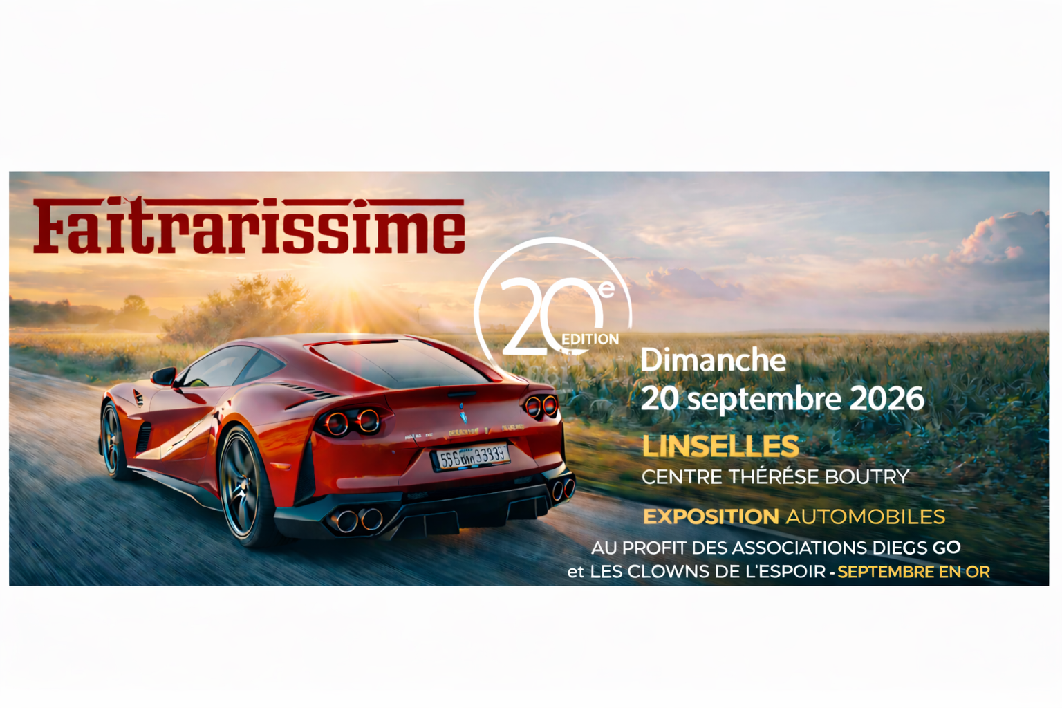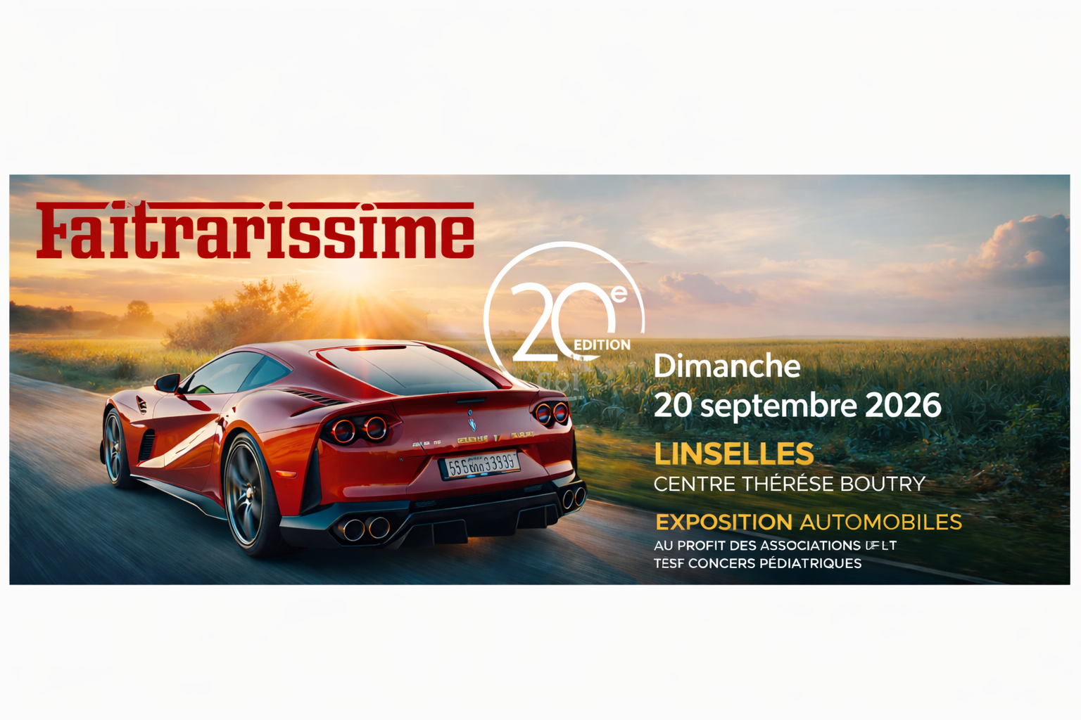 FAITRARISSIME FETE SA 20ème EDITION LE 20 SEPTEMBRE 2026 PROCHAIN !! UN PARTENARIAT EXCEPTIONNEL CETTE ANNEE AVEC LE GROUPE POZZI & DES MODELES FERRARI D’EXCEPTION … MAIS PAS QUE… DES EXPOSANTS, DES ANIMATIONS, UNE RESTAURATION ASSUREE PAR NOS PARTENAIRES RESTAURATION : LILLE TABLES ET TOQUES !! VOUS ETES PROPRIETAIRES, CONTACTEZ ANDRE AU 06 04 59 58 88 / VOUS SOUHAITEZ VOUS ASSOCIEZ A NOTRE 20ème EDITION, CONTACTEZ SYLVIE AU 06 09 60 09 63 et cliquez ci-dessous pour plus d’informations ou sur notre page facebook ou instagram rotarylinselles ou instagram Faitrarissime